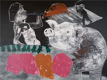 那年晚些时候,我在大理床单厂艺术区策划了朝左拉个人摄影展《白日梦》(Black Dreams)。三年后的今天,我们在同一家画廊举办他的……画展。朝左拉,加油!